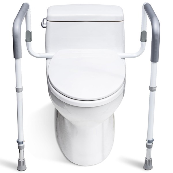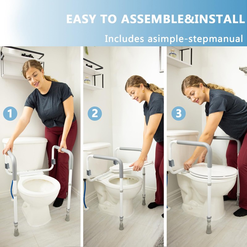 - SIMPLE ASSEMBLY AND USE: Easily assembled in minutes without tools,then simply adjust the toilet safety frame with arms to the desired height and width.