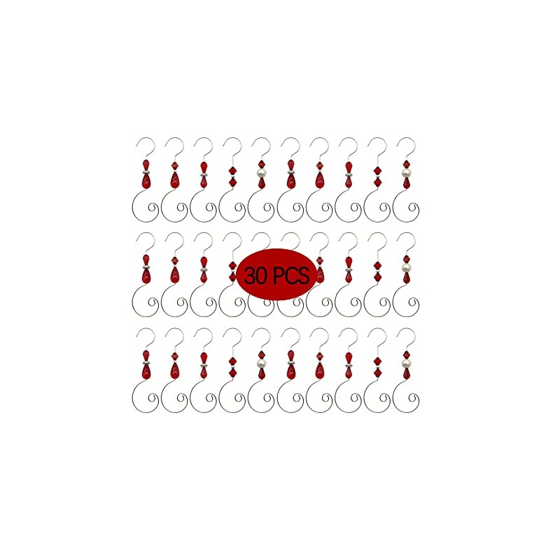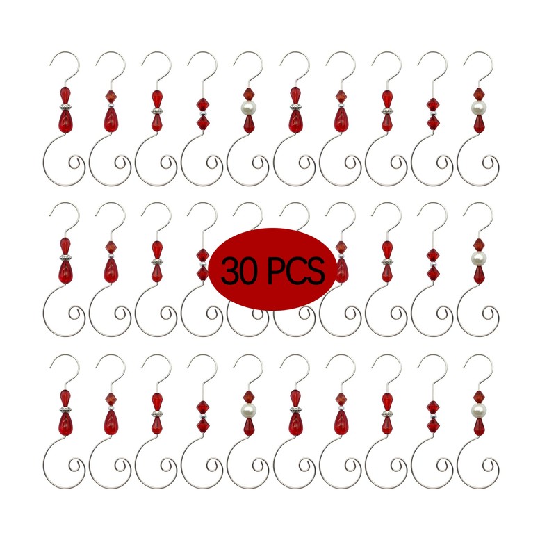 WEIBIAO Christmas Ornament Hooks - Silver Wire Hooks, Acrylic Jewelry Hooks with Christmas Tree Ornament Hooks-30 PK (Red)
