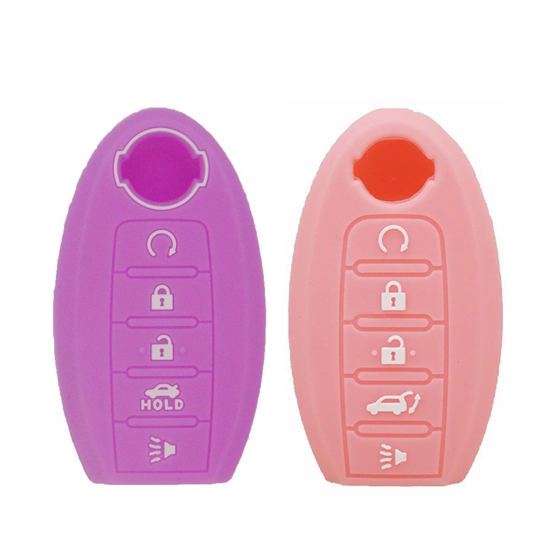 WEIBISS 2Pcs Silicone Key Fob Cover Protector Keyless Jacket Remote Holder for Nissan Altima SR Armada SL Maxima Murano Pathfinder Rogue Titan Versa Sentra (5 Buttons), Pink Purple