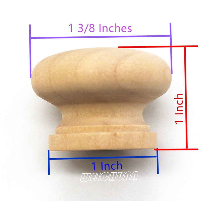 WEICHUAN 15PCS Round Wood Unfinished Cabinet Furniture Drawer Knobs Pulls Handles (Diameter: 1-3/8 Inches Height: 1 Inch)