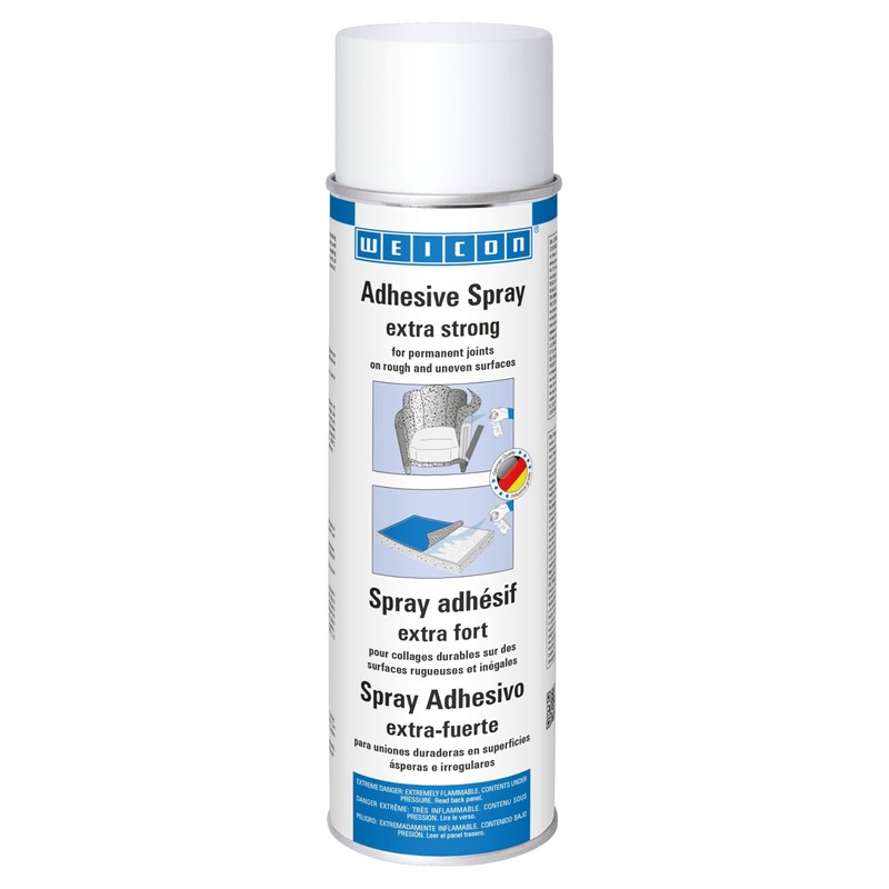 - DETAILS - WEICON Adhesive Spray extra strong can be used universally and is suitable for strong and permanent bonding on rough and uneven surfaces.