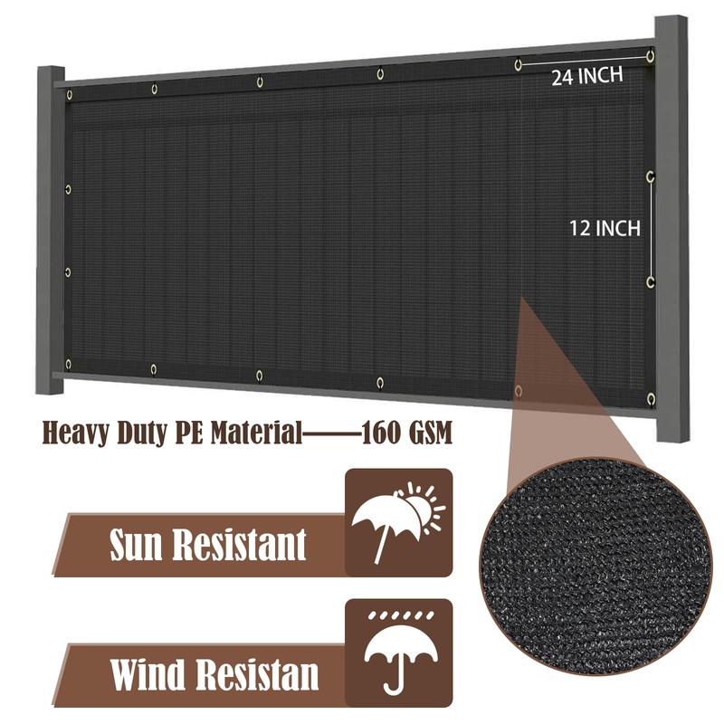 • [Great Material Mesh] The Fence Privacy Screen is made of high density PE fabric netting material, its 160 GSM shade cloth mesh can passage air free , sun-resistant, no maintenance. Patio Privacy barrier is also tear resistant, lightweight and sturdy.