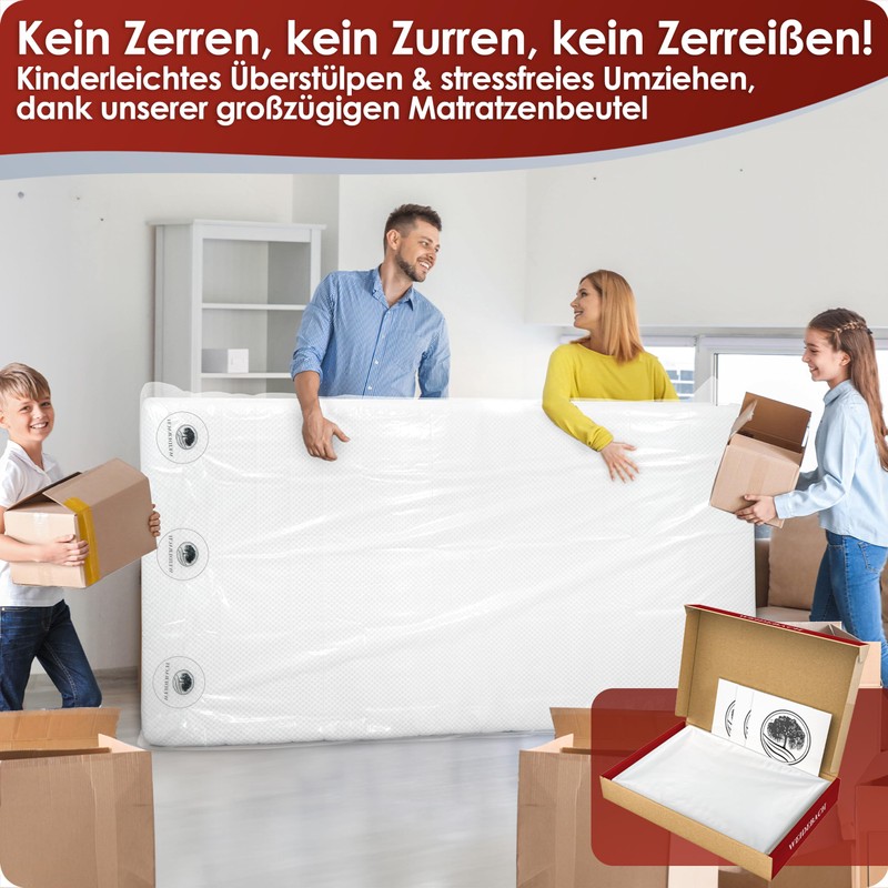 - Durable and leakproof: the mattress cover keeps any dirt away from the mattress to be protected. This is ensured by the durable 60 μm thick film. For worry-free transport, you can seal the bag extra with 3 sealing stickers