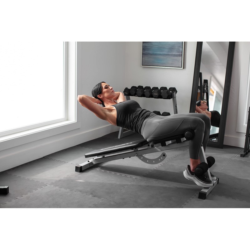 - Integrated Leg Lockdown; Secure proper form and prevent unwanted shifting as you train with dumbbells (not included) or your own body weight; Comfortable foam protects your skin