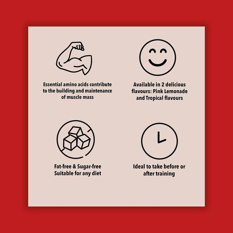 - REFRESHING FLAVOURS! Premium EAA Zero is available in two refreshing flavours, Pink Lemonade and Tropical Fruits. Take a sip and ready to beat up your performances
