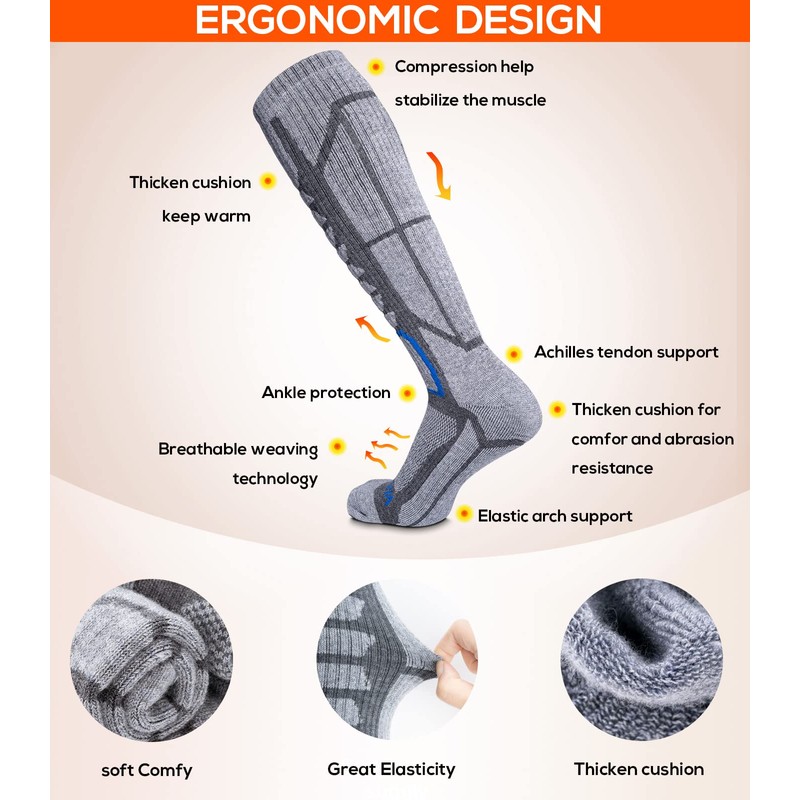- IDEAL FOR SKIING & WINTER SPORTS: This Ski Performance Socks are Pefect for Skiing, Snowboarding, Mountaining, Trekking, Hiking or Hunting in the Cold Season and all kinds of other Winter Sports. These Thermal Wool Ski Socks are the perfect gift for your family and friends