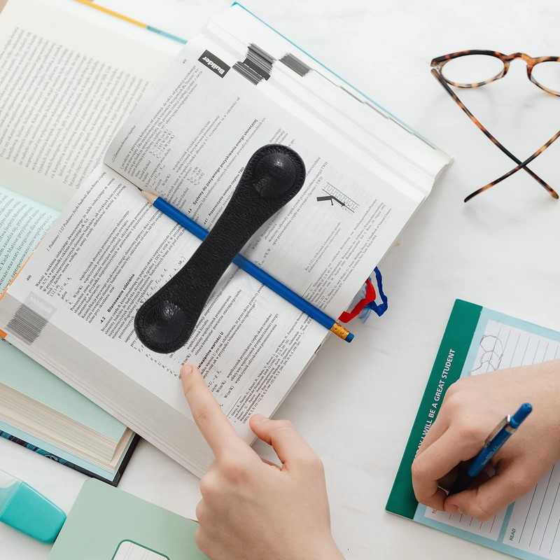 Weighted Bookmark - Leather Book Page Weight Book Weights Holder for Hands-Free Reading Paper Weights for Cookbooks Crafts Music Books Bookmarks(01Black)