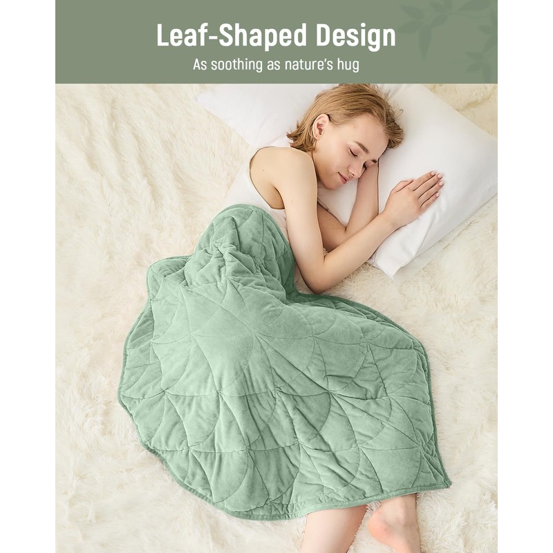 - Chic Leaf-Shaped Design: With its unique leaf-inspired design, this compact weighted throw blanket isn't just functional; it's a visual delight for enhancing any sofa, couch, or bed. The small, well-distributed weight pockets provide comprehensive comfort, mimicking a cozy hug