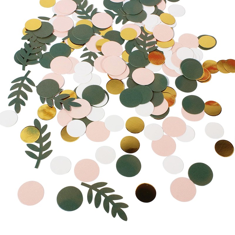 🎉 Package Include: confetti dots (Greenery Eucalyptus Confetti, Dark green conffeti dots, Pink confetti dots, White confetti dots, gold confetti dots)
