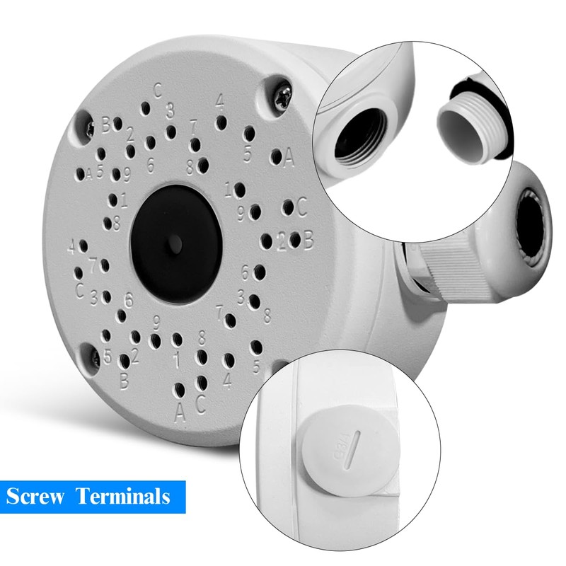 - 【Robust Aluminum Construction】Crafted from sturdy aluminum alloy, this cctv junction box protects the camera from physical damage. It includes an internal waterproof gasket. The widened front opening of the universal bullet camera mount accommodates wires of various sizes, offering multiple wiring solutions.