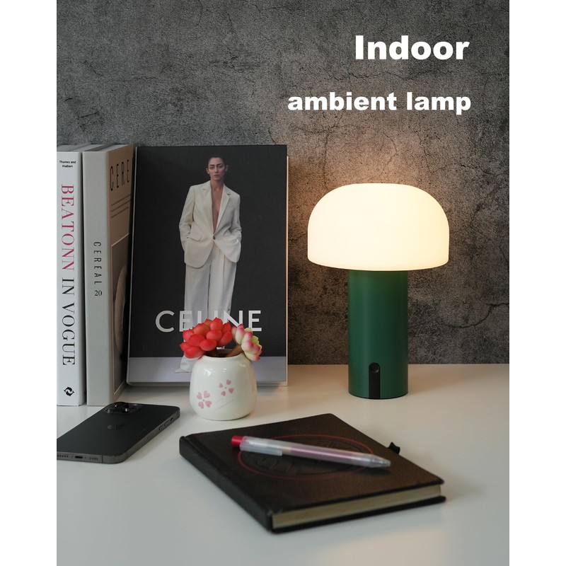 - Aesthetic Design: A modern and minimalist rechargeable ambient table lamp, shaped like a cute mushroom, which is loved by both adults and children. Lamps are both practical and decorative, and are a rare good thing in life.