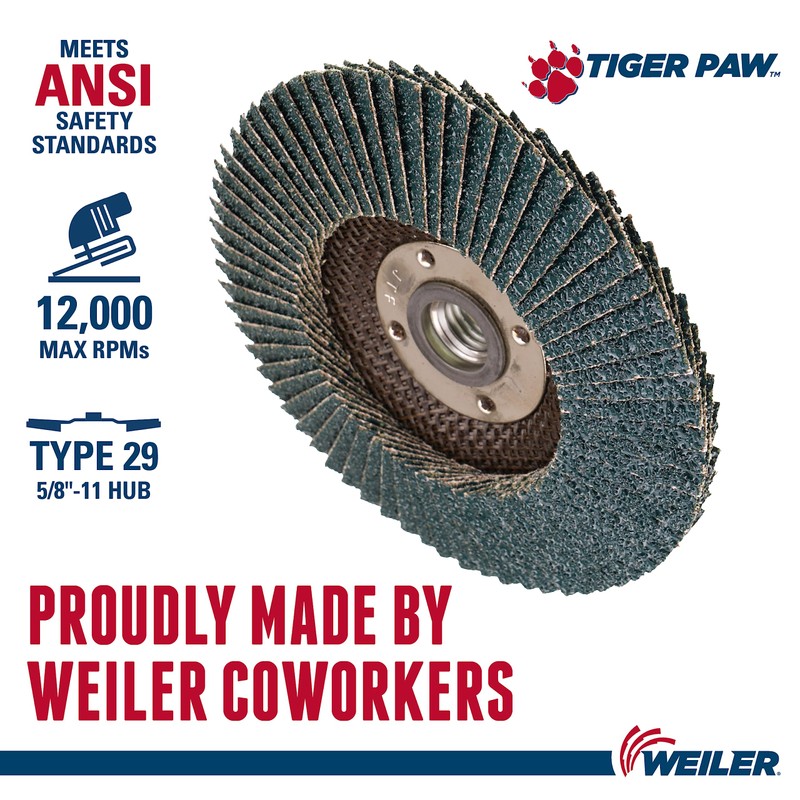 Weiler 51132 5"" Tiger Paw Abrasive Flap Disc, Conical (Ty29), Phenolic Backing, 40Z, 5/8""-11 UNC Nut (Pack of 10), 40 grit
