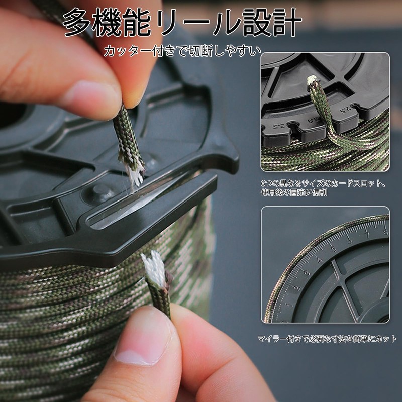 - ♥️【New Reel】The reel has a cutter, ruler, and fixed hole for easy use. The cutter is wrapped in plastic to keep your hands safe and secure. The ruler is convenient to cut the required dimensions without waste. 6 fixed holes, suitable for different size umbrella rope, keep the rope in place after use