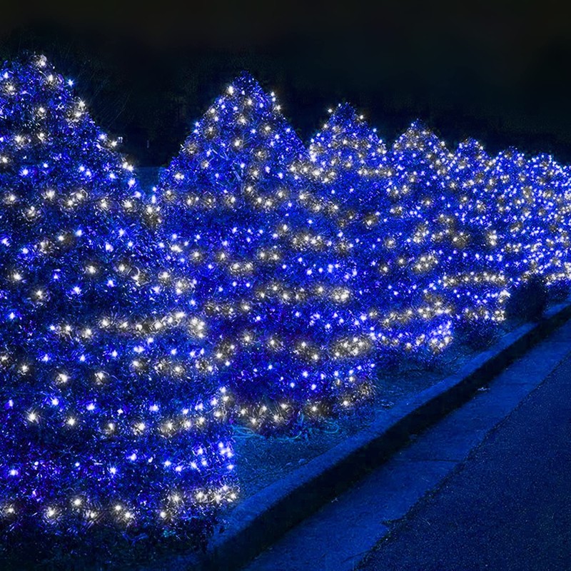 weillsnow 198 Led 9.8ft x 6.6ft 198 LED Net Lights, Connectable 8 Lighting Twinkle Modes Mesh Lights for Christmas Outdoor Patio Garden Bush Fence Decorations (Blue & White)