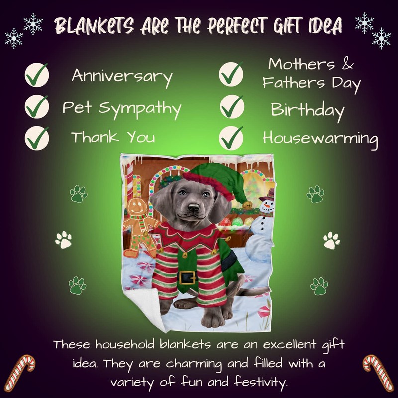 Weimaraner Dog Blanket - Christmas Gingerbread Elf - Super Soft & Warm Pet Theme for Sofa or Bed, Warm Fleece, Sherpa or Woven Material, for Dog Lovers 60x80 Fleece
