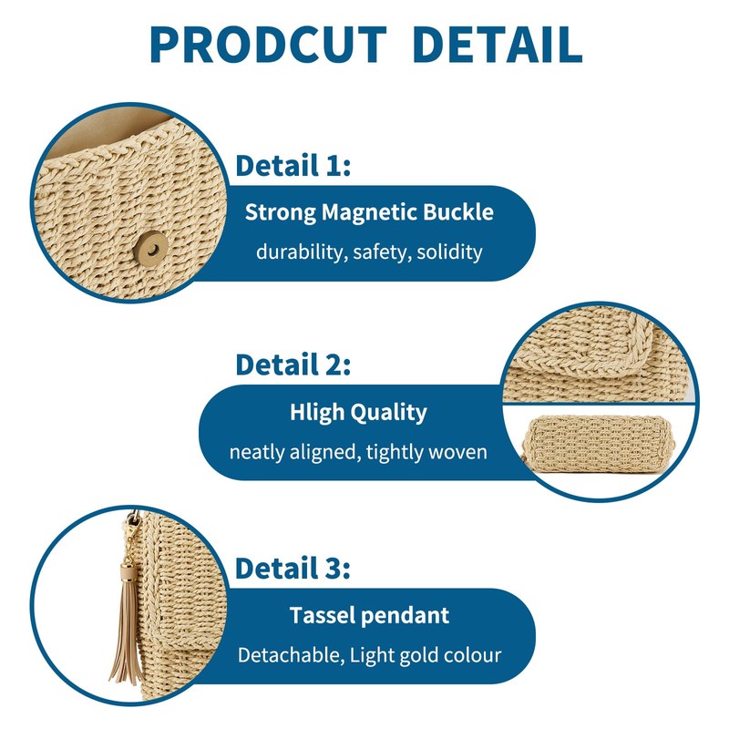- Appearance:This women's braided bag features a neat straw design, adjustable shoulder strap and detachable tassel pendant, giving you some room to mix and match independently and let your handbag a unique personality.