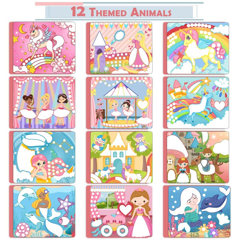 Weipbwor DIY Dot Sticker Art Craft, 12 Unicorn and Princess Mermaid Themed Pictures, No Mess Sticker Art,Enlightenment Games,Short Trips, outings,Ideal Gift for Boy and Girl Age 3 to 7