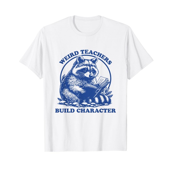 - Celebrate quirky educators with this funny raccoon doing a dance pose and bold lettering that reads "Weird Teachers Build Character." Perfect for teachers who embrace their uniqueness and love to make learning fun.