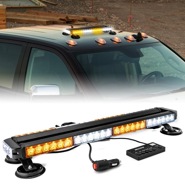 WeiSen LED Strobe Light Bar, 27" 54 Double Side Warning Flash Lights Emergency for Tow Trucks Construction Vehicles Pickup (Amber/White)