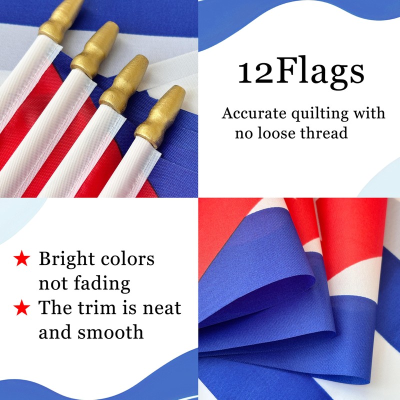 - DURABLE - Imported. Made of 100% polyester and Wooden stick,Special stitching technology, the joint between the flag and the stick is not easy to tear.