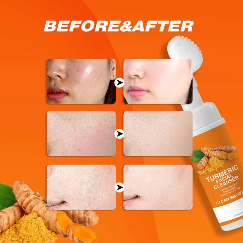- SUITABLE FOR ALL SKIN TYPES: Our turmeric face wash with brush is designed for daily use; Whether your skin is oily, dry or sensitive, this turmeric cleanser is perfect for you; Also, it is perfect as a gift for birthdays, Christmas and Valentine's Day.