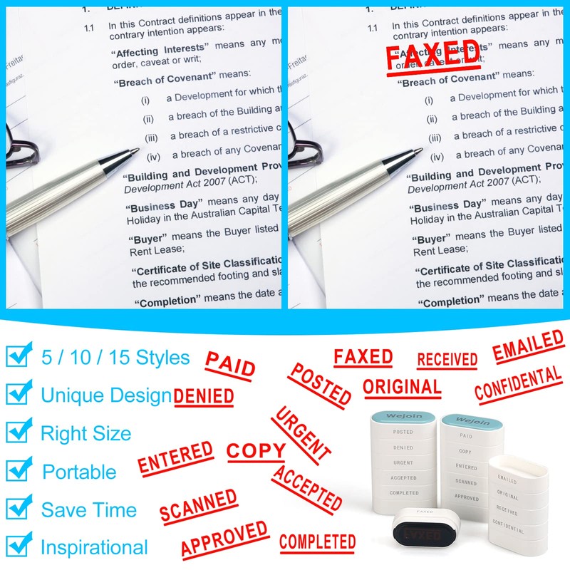 WEJOIN Office Stamps Set, Self Inking for Office Use Set, Pre-Inked Rubber Stamp of “Paid Copy Entered Scanned Approved FAXED EMAILED Original Received Confidential” for Business Accounting