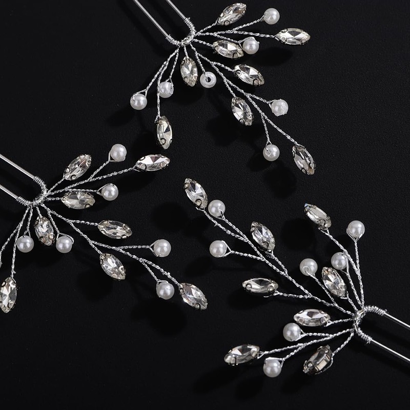 - Elegant and exquisite design:simple silver rhinestone pearl crystal hair pins,unique design and exquisite craftsmanship add charm to your outfit.