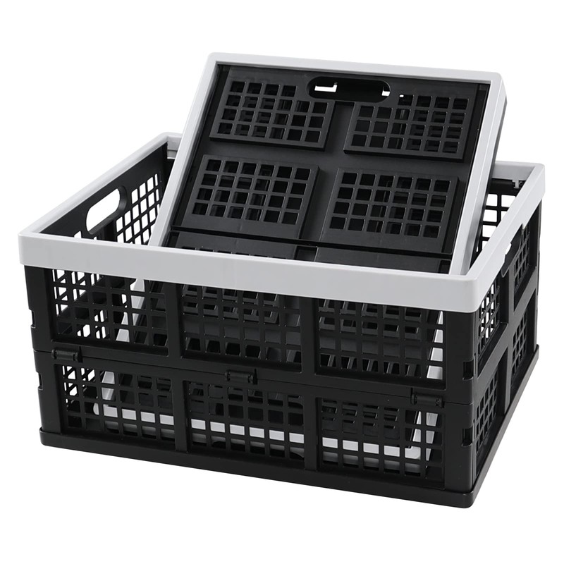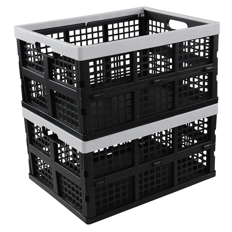 Wekioger 35 L Plastic Collapsible Storage Crates Set of 2, Stackable Folding Milk Crates