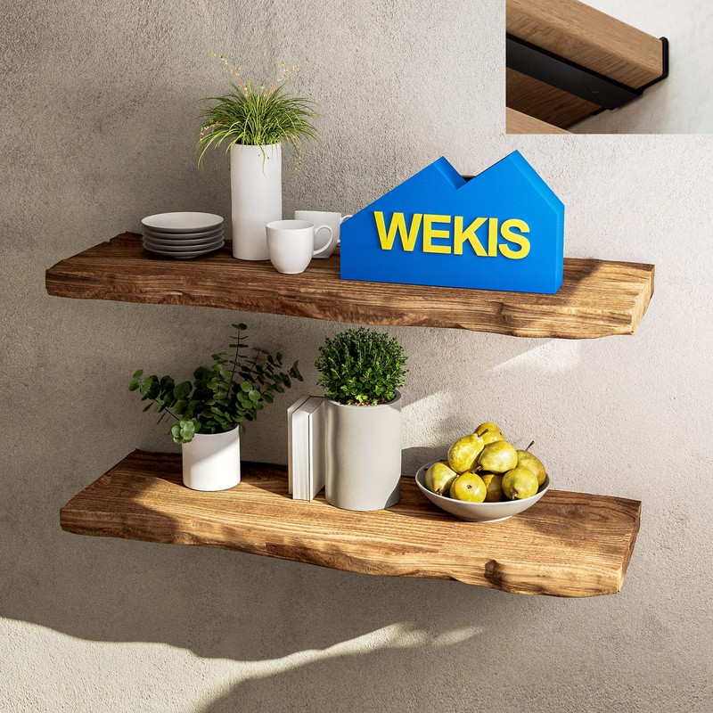- Rustproof Matte Black Floating Shelf Bracket. The WEKIS metal shelf brackets is made of 1/5 inch thickness solid cast iron, well-paint matte black with high quality standard which is not easy to be scratched or clipped. We strickly focus on quality control and you can shop with confidence. Please kindly notice that the board is not included.