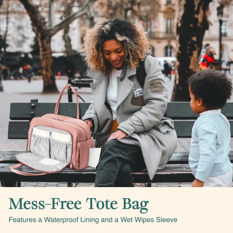 - Convertible & Convenient - 4 ways of carrying - The baby changing bag can be used as a tote/shoulder bag, or strapped on stroller (Pram hooks excluded). The back handy luggage band is suitable for wheeled carry-on luggage handles. Elegant for many occasions like shopping, traveling with baby or as a hospital maternity bag when the baby arrives.
