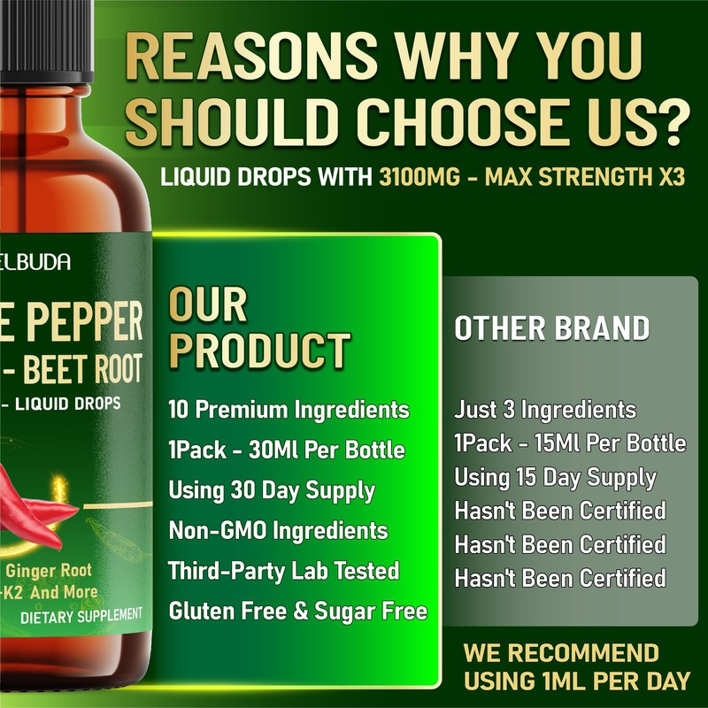 - Easy Daily Routine: Take 1ml of Liquid Cayenne Pepper per day. Each bottle provides a full 1-month supply, easy to take directly or mix with your favorite drink.