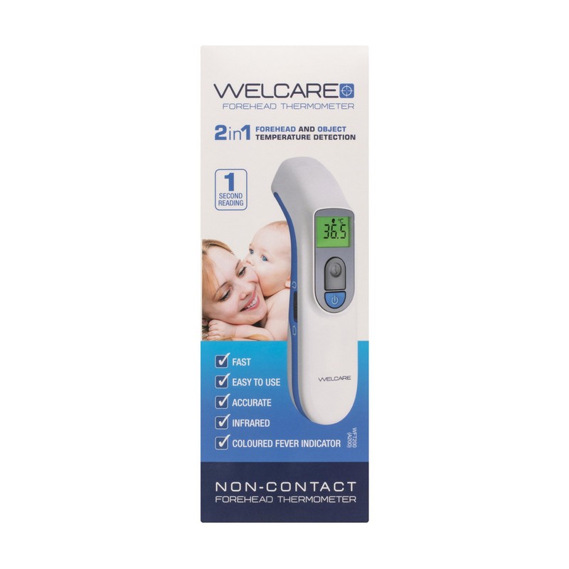 Fast and accurate non-contact temperature readings is just a second away with the Welcare Forehead Thermometer. Take measurements in either forehead or object mode quickly and easily. This simple-to-use thermometer features colour fever indicators in green, yellow and red, and is contactless so it can be easily used at night without waking a sleeping child. 25 reading memory helps you to keep track of temperature fluctuations over time.
