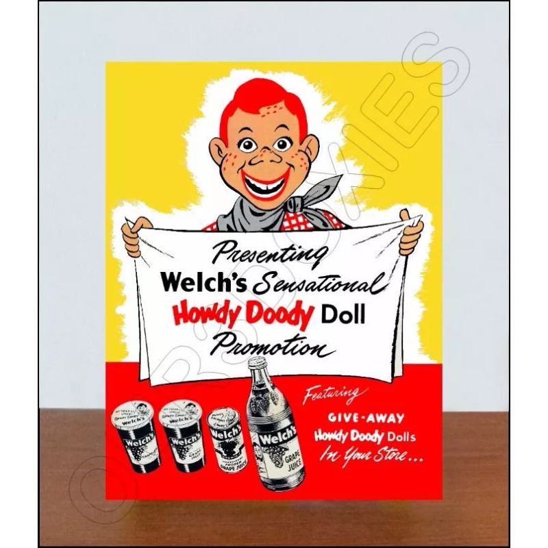 Welch's Grape Juice 1950's Howdy Doody Welch's Grape Juice Store Counter Advertising Standup Sign