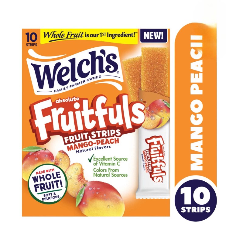 Welch's 🟠 New Welch’s Fruitfuls Fruit Strips Mango Peach Whole Real Candy (10 Strips)