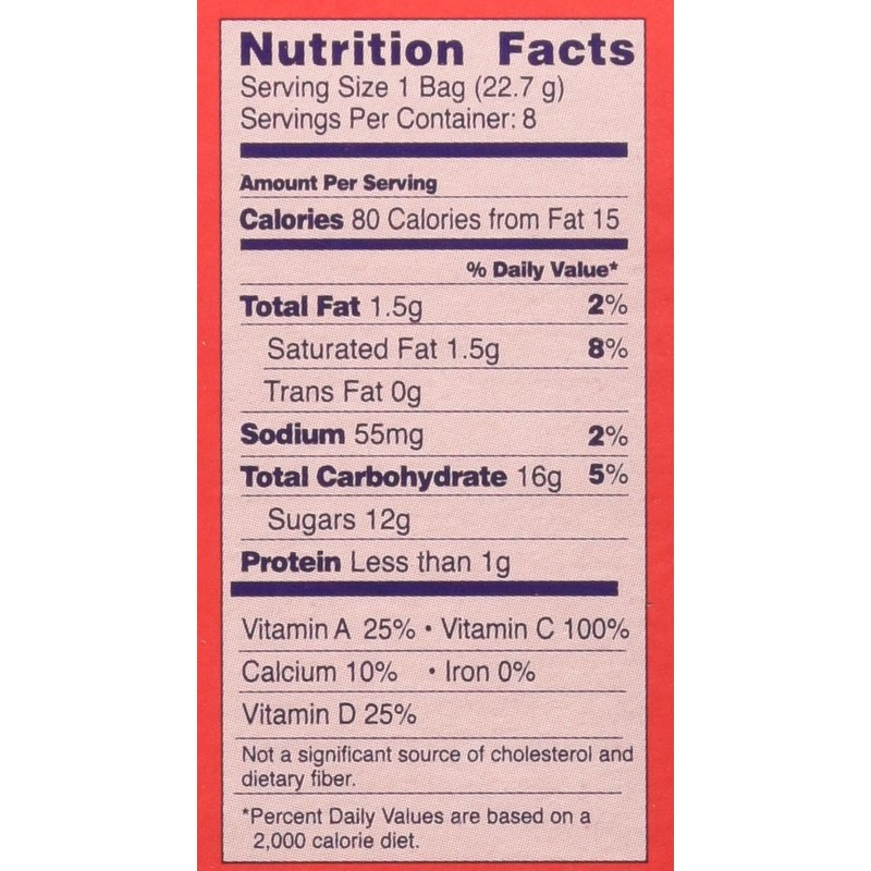 - 100% vitamin C, 25% vitamin A & D and 10% calcium
