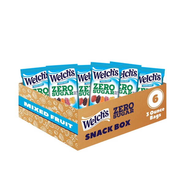 Welch's Zero Sugar Fruity Bites, Mixed Fruit Snack Box, Gluten Free & Sugar Free Snacks, 3oz Snack Packs (Pack of 6)