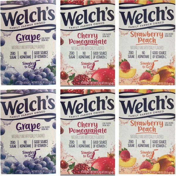 Welchs Singles To Go Variety! Strawberry Peach, Cherry Pomegranate & Grape (Pack Of 6) pack