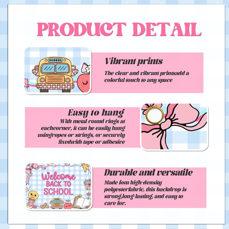 - Wide Applications: This Welcome Back to School backdrop banner suitable for student's back to school party, and other parties, suitable for indoor and outdoor use, and it is also very suitable for your party as a background cloth for taking pictures! You can also hang it on the walls, dessert table, branches, gardens, courtyards and other places you want to decorate.