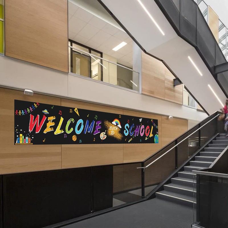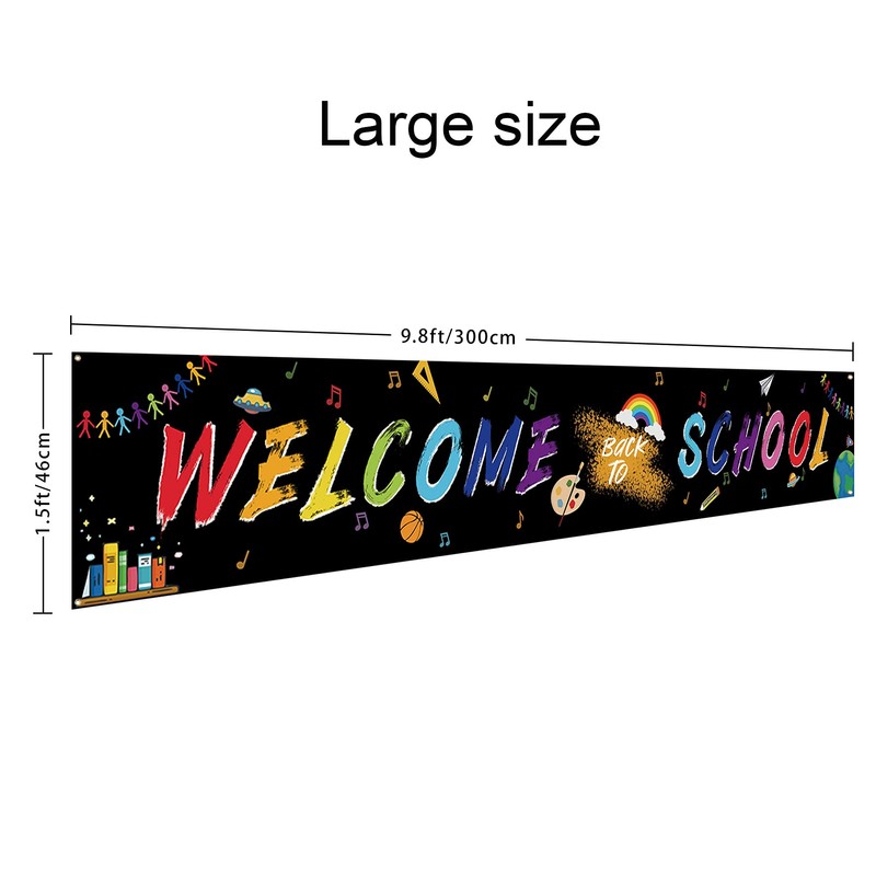 - Large Back to School Banner: Showing oversized multicolor letters "WELCOME BACK TO SCHOOL", unique design including drawing board/ pencil/ music/ book/ globe, bringing a fun atmosphere to for students.