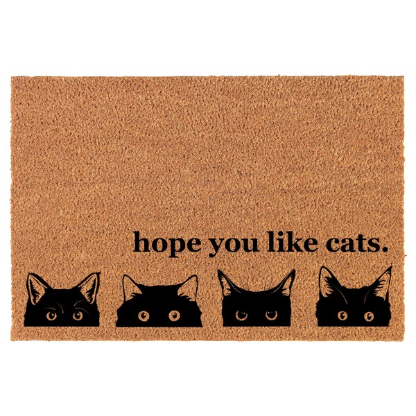 Welcome Doormat Coco Coir Door Mat Gift Peeking Cats Hope You Like Cats Funny (24" x 16")