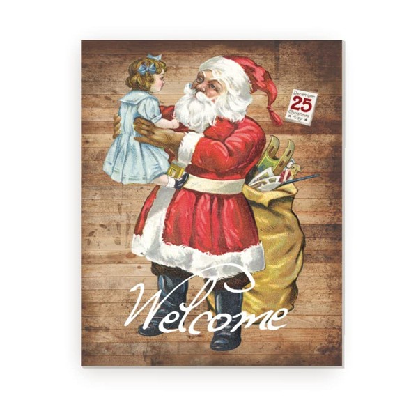 Welcome Santa With Sack Farmhouse Style Wood Wall Decor Sign 16x20