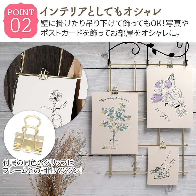 Welcome Space Photo Frame Memo Board Picture Frame Wall Hanging Decoration Birthday Decoration with 12 Clips Wooden Stand (Gold Net Photo Frame)