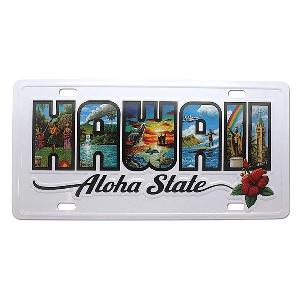 - Each license plate measures 12” x 6” and is packaged in a resealable polybag. Designed in Hawaii.