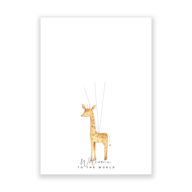 Welcome to the World Giraffe Nursery Wall Art, Baby Shower Fingerprint Guest Book Alternative, Watercolour A4 Print