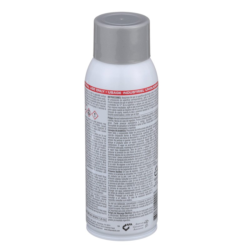 Brite Zinc aerosol spray can. Covers 40 square feet. 69 percent zinc metal. One step color matches the shiny look of Hot dip galvanizing. Special no clog nozzle. Meets ASTM-A780 for corrosion protection. 12.5 oz aerosol can.