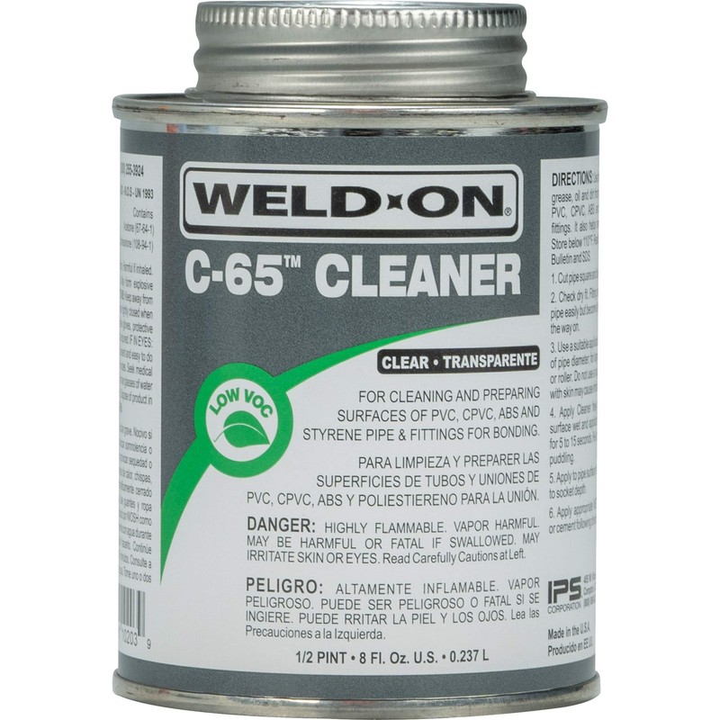 Weld-On 10203 C-65 PVC/CPVC/ABS/Styrene Cleaner - Low-VOC, Clear, 1/2 Pint (8 fl oz)