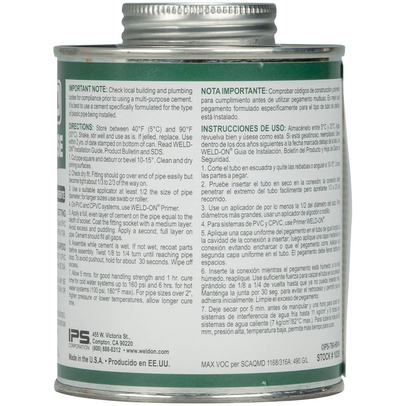 Weld-On 10258 790 Multi-Purpose Medium-Bodied High Strength Solvent Cement - ...