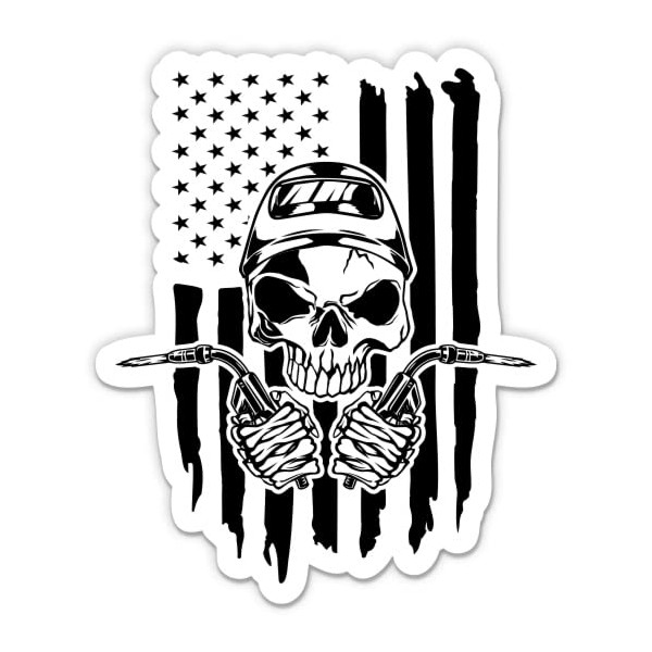 Welder Skull American Flag Stickers - 2 Pack - Waterproof Vinyl for Car, Phone, Water Bottle, Laptop - Welder Decals (2-Pack)