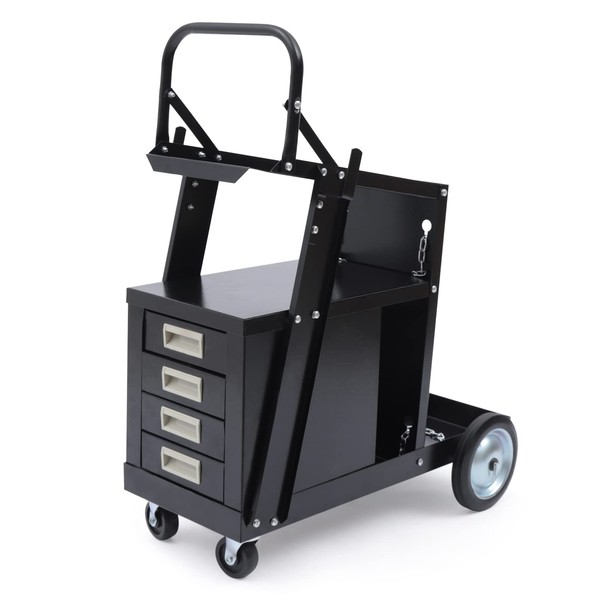 Welding Cart, Heavy Duty 360° Rolling Welder Cart with 4 Drawers & Tank Storage Safety Chains 176.37lbs Load Capacity for Welder and Plasma Cutter