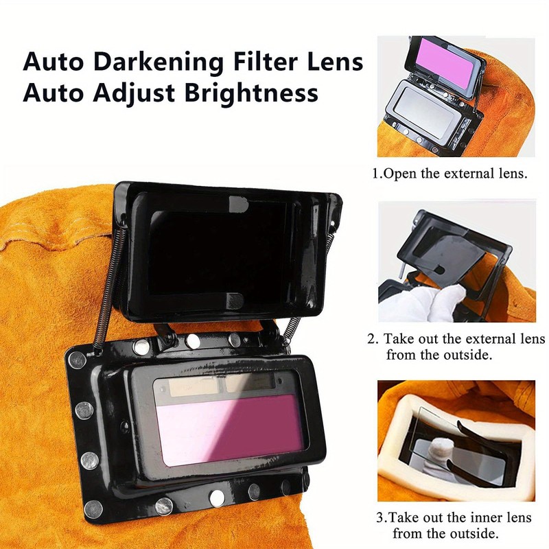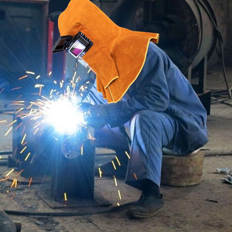 - Heat & Fire Protection:Made from genuine heat-resistant leather, this welding hood effectively shields your head, face, and neck from sparks, debris, sawdust, and molten slag during welding tasks.